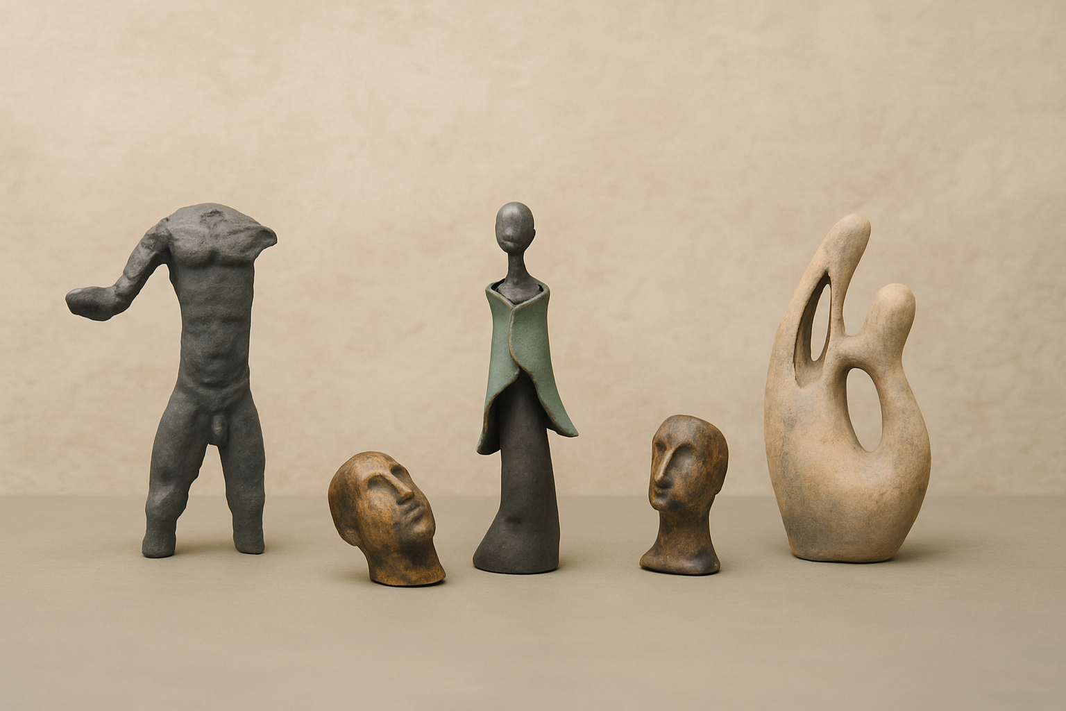 Absztrakt kerámiaszobrok, melyek a neolitikum emlékeiből visszhangzanak és a jelen rezdüléseiből születnek. Nyersek, ösztönösek, mégis finoman emberiek – akárcsak maga az emberi tapasztalás.